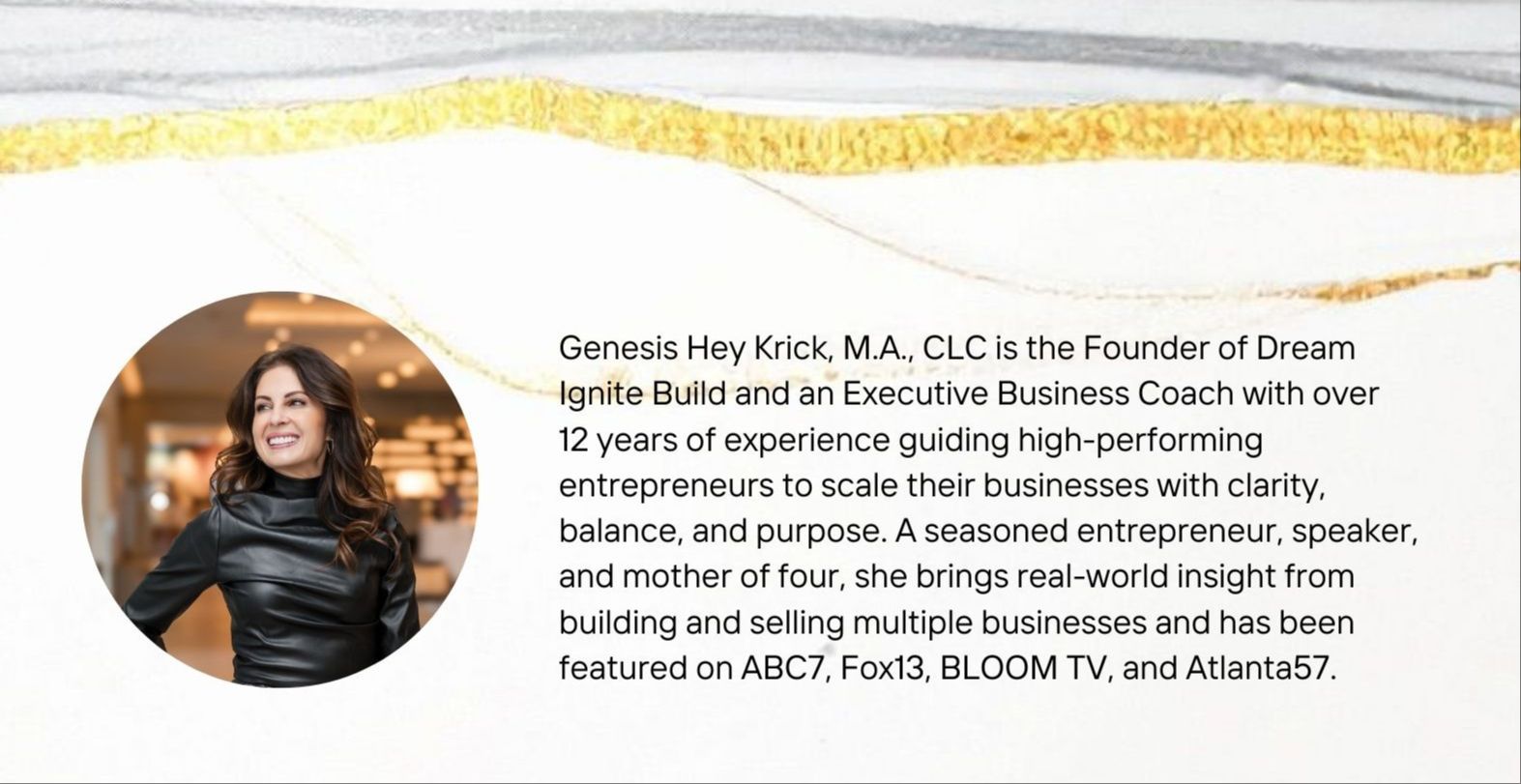 Elevate Inner Circle Virtual Coaching Group is a high-level mastermind for entrepreneurs who are scaling to the next level and want weekly strategic support, elevated conversations, and a room that challenges them to think bigger—while also offering opportunities to up-level through curated retreats, strategic partnerships, and private 1–1 coaching with Genesis.