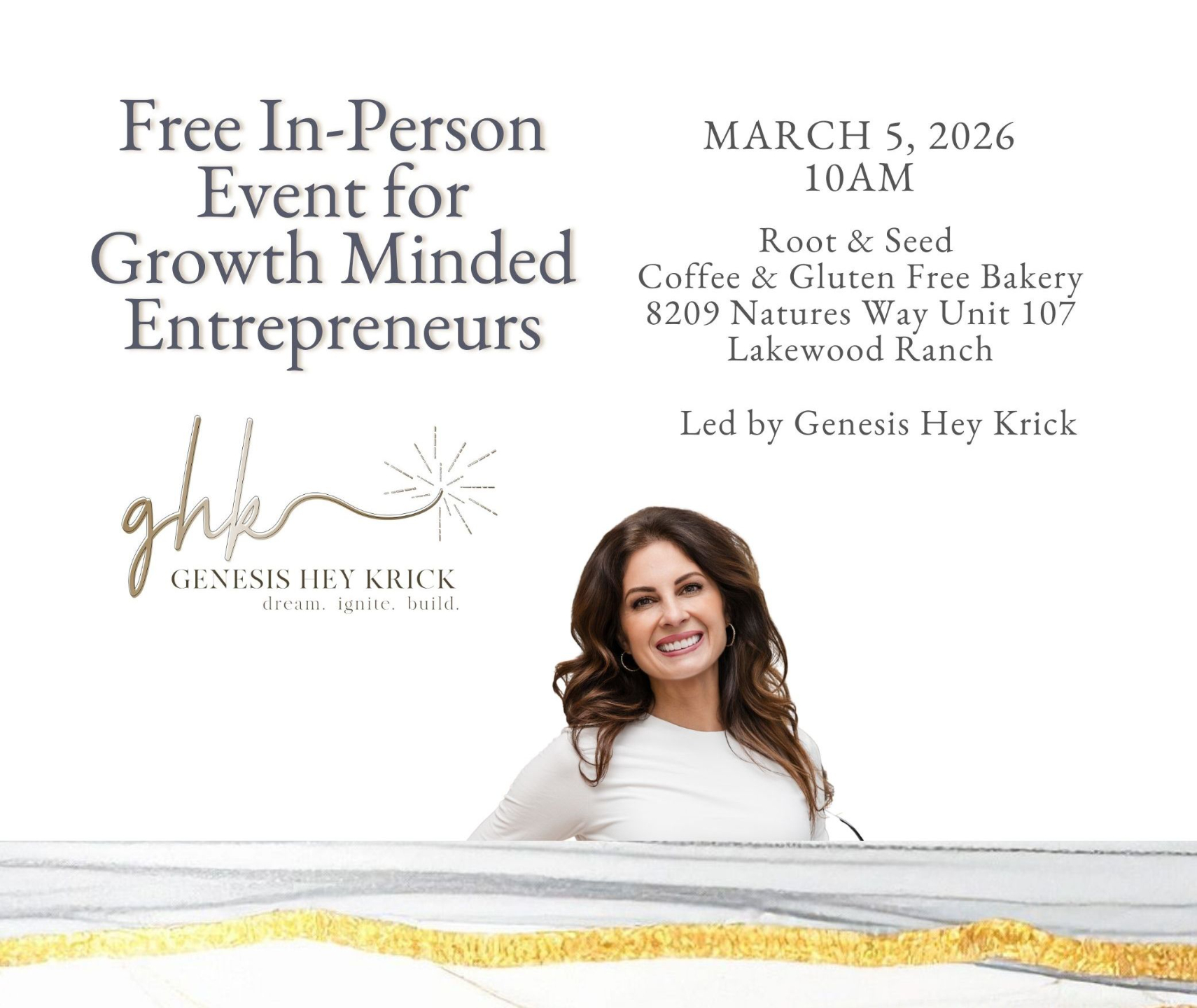 Join us for a free, in-person gathering at Root and Seed in Lakewood Ranch—a great local spot to grab coffee, gluten free bakery items, and settle into meaningful conversation. This event is designed for established, growth-minded entrepreneurs who value thought leadership, fresh perspectives, and strategic dialogue as the marketplace continues to evolve.